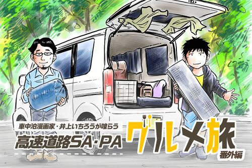 家を持たない車中泊漫画家・井上いちろうさんが「高速道路のSA・PA」で出会ったグルメをご紹介していく本連載。今回は番外編として、「車中泊」に関する基本知識にフォーカス。ゲストには車中泊専門誌『カーネル』編集長・大橋保之さんをお招きし、昨今、問…
