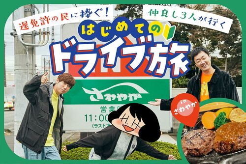 39歳で免許を取得し、約束の地 静岡のご当地レストラン“さわやか” へドライブ旅に出かける仲良し3人組に密着!漫画家の山本さほと芸人の五明拓弥(グランジ)、トラックメイカーimai(group_inou)による笑いあり涙ありの免許取得&初ドライブ物語。