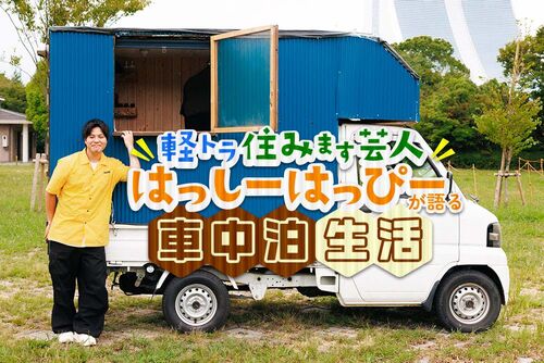 3万円の中古軽トラを10万円かけてDIYしたお笑いコンビ「コンピューター宇宙」のはっしーはっぴーさん。「売れるまで軽トラキャンピングカー生活」を宣言し、数々のトラブルにも負けず、車中泊で過ごす彼の軽トラを直撃してみました!